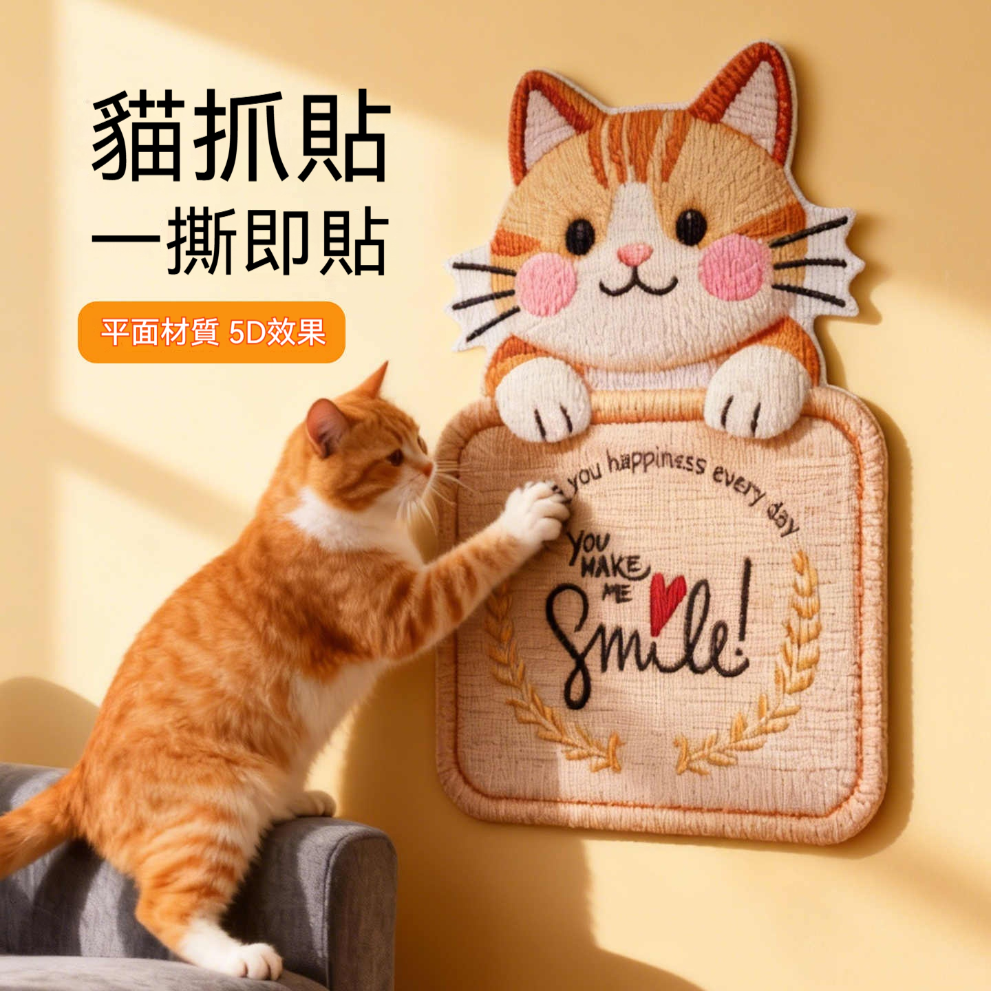 ✨萌怪獸貓抓板貼!護牆護沙發,一撕即貼不留痕 ✨不掉屑|不傷牆|一撕即貼 萌怪獸造型,貓抓沙發救星 ✨