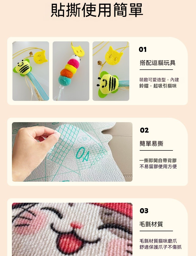 ✨萌怪獸貓抓板貼!護牆護沙發,一撕即貼不留痕 ✨不掉屑|不傷牆|一撕即貼 萌怪獸造型,貓抓沙發救星 ✨
